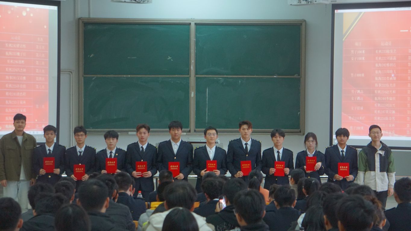 会上,何淋老师宣读2024年航运学子获得省级以上奖项表彰名单,希望全体同学要以受表彰的同学为榜样,刻苦学习,全面发展,立志成才;付晓平、邵志敏两位老师为获得省级以上奖项学生代表颁奖。赵双双老师宣读表彰2024年校运会性吧