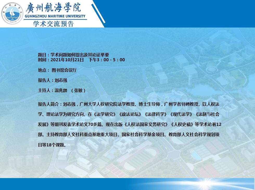 刘志强教授学术交流预告 :学术问题如何提出及其论证举要