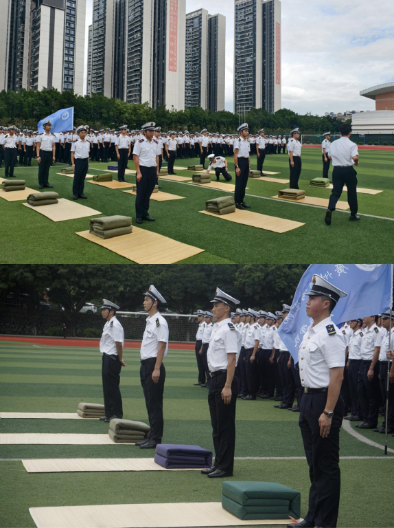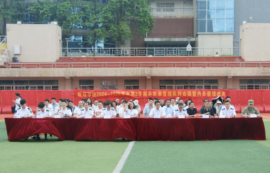 在黄埔校区南区风雨操场举办了2024-2025学年第2学期半军事管理队列会操暨内务整理比赛。学院全体教职工、2023级学生代表以及2024级航海类专业近600名同学参加活动。