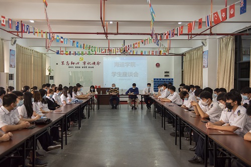 (海运学院供稿)4月22日下午,学工处黄毅处长在航海楼512会议室召开海运学院学生座谈会,与海运学子面对面,倾听学生心声。海运学院大中队长及近150名学生分两批次参加座谈。
