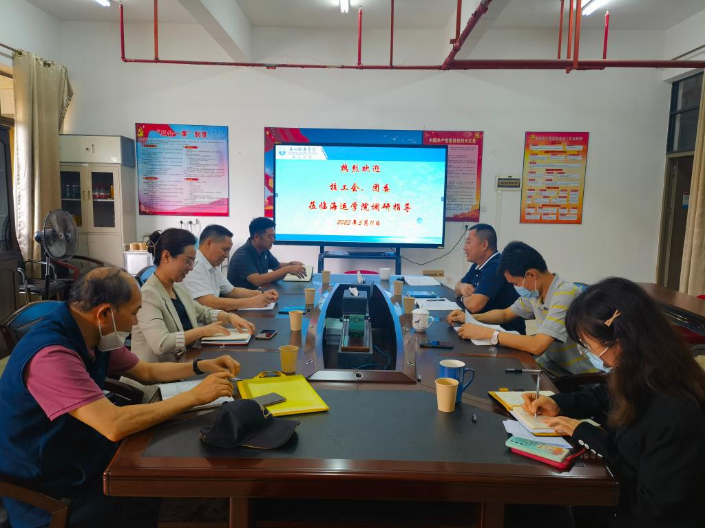 (海运学院供稿)2023年5月11日,校工会李满启主席、黄培钊副主席、校团委李娜副书记一行人来到海运学院进行调研指导,海运学院党委书记张海波、党委副书记林少栋、工会主席唐存宝、分团委书记林恬恬等相关人员参与了本次调研交流。