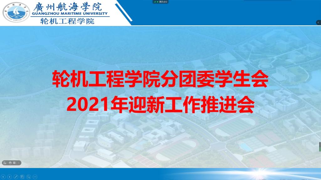 (轮机工程学院供稿)8月28日下午,轮机工程学院分团委、学生会在腾讯会议平台线上召开了2021年迎新工作推进会,分团委书记陈茂嘉老师、中队长杨璟老师、学生会副主席陈南方同学、主要团学干部参加了会议。会议由李萌同学主持。
