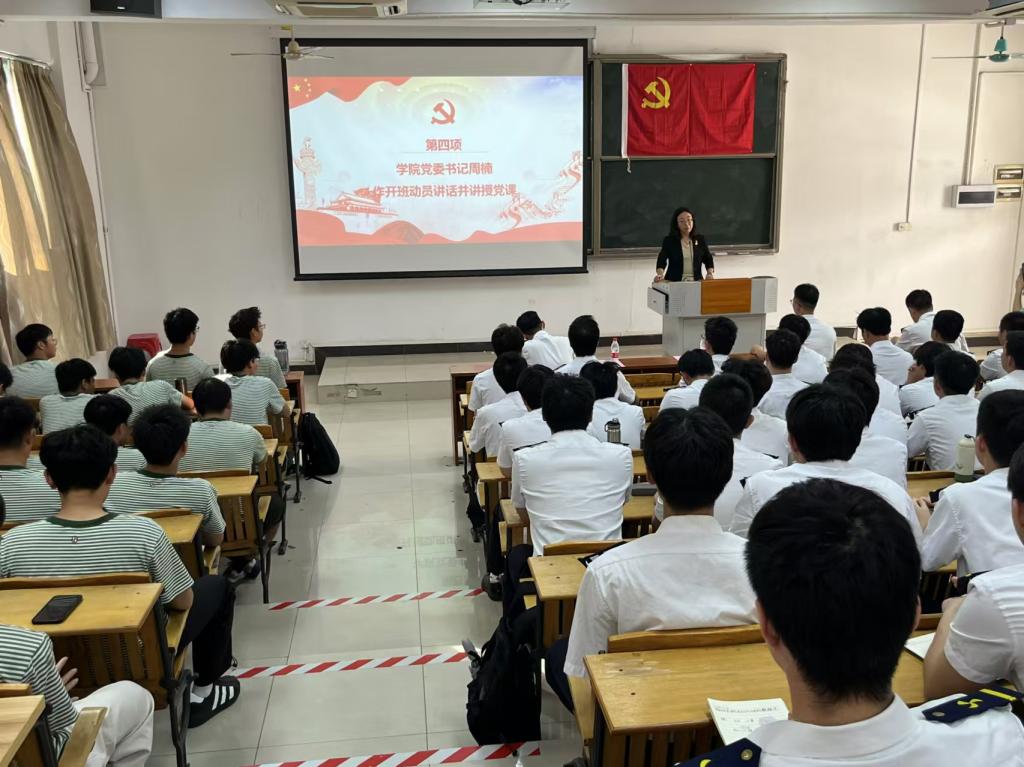 开班仪式后,周楠以《学习贯彻党的二十届三中全会精神——逐梦深蓝为海洋强国建设贡献青春力量》为题开启了党课第一讲暨2024年秋季学期“思政第一课”。她指出,党的二十届三中全会进一步吹响了全面深化改革的号角,正在把中国式现代化推向前进。围绕为什么要坚持全面深化改革、学校该怎么发力、青年当何为的主线,总结了我校办学成果、办学特色、办学宗旨和办学方向。她满怀深情地分享了自己对学校、学院的了解过程,介绍了学院的现状、正在采取的有力措施和未来的努力方向。她鼓励大家像众多优秀校友一样,坚定意志,涵养优良学风,脚踏实地,练就过硬本领,朝向海洋强国的伟大征程奋勇发力,在新时代新征程上留下无悔的青春足迹。
