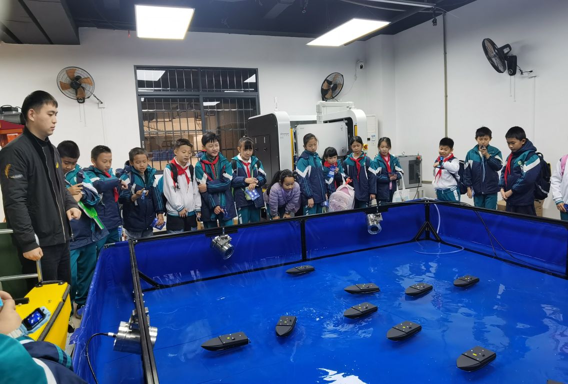海洋强国科普教育基地会同校团委共同举办广航青蓝科技节科普活动,怡园小学四年级近200名的师生到基地开展研学,这是该基地升级为省级科普教育基地后迎接的首批研学团队。